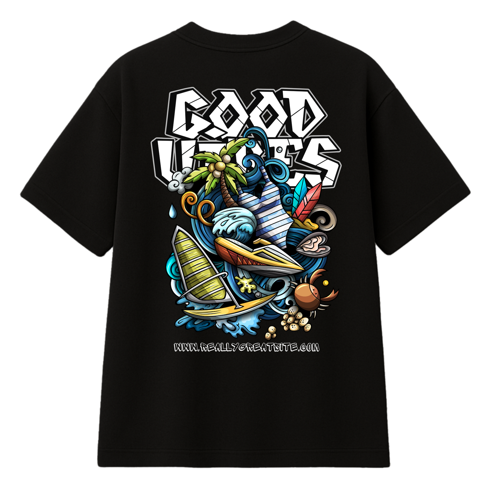 Plonge dans une ambiance estivale unique avec le T-Shirt Good Vibes CHOWBI, une pièce streetwear artistique qui capture l’esprit de la mer, du surf et de la liberté. Son design dynamique mêle vagues, planches de surf, palmiers et éléments marins pour transmettre une énergie positive et moderne.