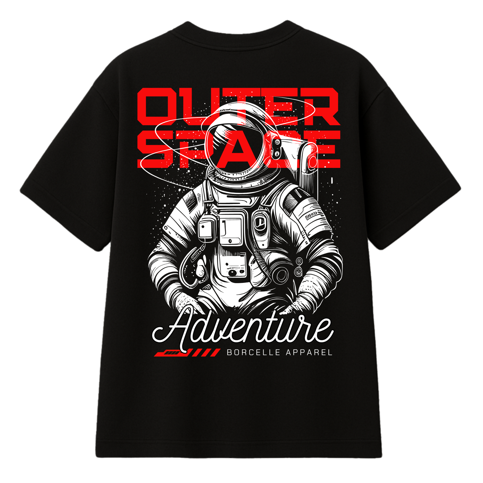 Le T-shirt Space Streetwear “Outer Space Adventure” est l’expression ultime de la curiosité et de l’audace. Ce design premium présente une illustration complexe d’un explorateur spatial en combinaison complète, entouré des mentions “OUTER SPACE” en rouge intense. Ce visuel capture l’essence de l’aventure et de l’inconnu, des thématiques chères à la culture urban fashion contemporaine qui cherche sans cesse à repousser les frontières du style.